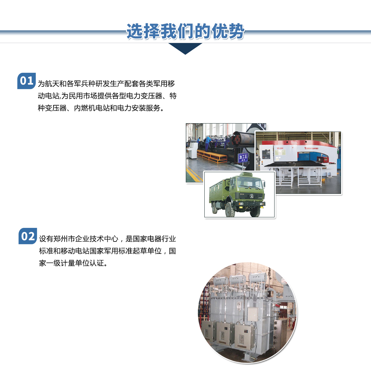 鄭州金陽電氣有限公司是由鄭州市國資委控股的國有獨資企業(yè),是原機械工業(yè)部在上世紀五十年代投資建立的移動電站和電力變壓器生產企業(yè)。公司下設電站公司和變壓器公司及其它配套公司,長期以來在國內移動電站和電力變壓器行業(yè)占有重要位置。是河南省具備設計生產110kV電壓等級以上電力變壓器資質的企業(yè),是國家經貿委首批推薦城鄉(xiāng)電網建設與改造所需變壓器的生產企業(yè)。河南省變壓器檢測中心設在我公司。